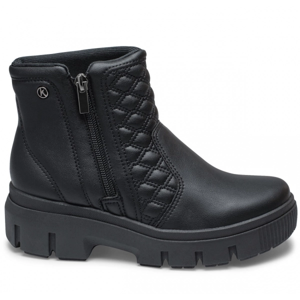 A Bota Kolosh de Cano Curto Preta combina conforto, elegância e versatilidade em um só modelo. Com design moderno, matelassê com volumes e zíper lateral, ela traz um toque de glamour ao seu look. A palmilha Impulse+ com memória inteligente garante bem-estar o dia todo, enquanto a sola tratorada de 5,5 cm oferece segurança e estilo. Perfeita para o dia a dia, trabalho ou lazer, essa bota é sua parceira ideal para um visual marcante e cheio de atitude!